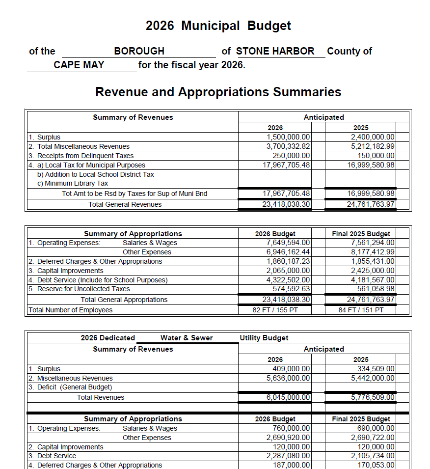 2026 Stone Harbor Budget
